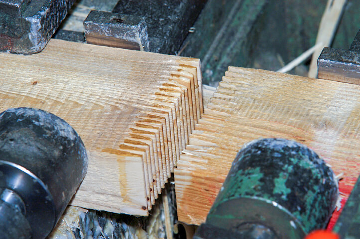 Association des lamelles bout à bout pour constituer une lame continue conservant les propriétés mécaniques des bois.